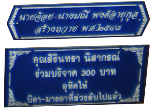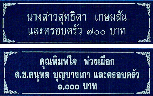 รับทำป้ายบริจาค (ป้ายสีฟ้า) ในนามผู้ทำบุญ บริจาคตามวัดต่างๆ ขนาดต่างๆ ตามสั่ง